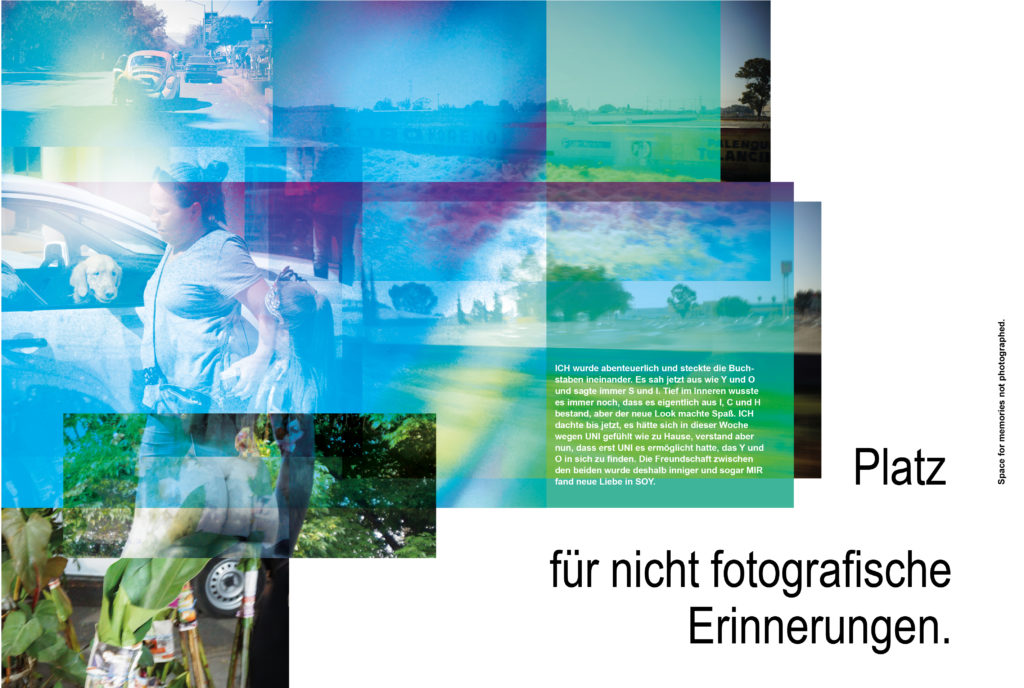 The media we choose for representing those impressions are representing them screened and filtered again. Depending on every unique background and personality, you will receive your very own picture.That's why photographs of this project are transparently adding up a new picture and story.